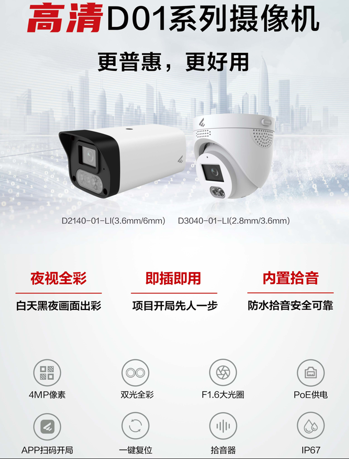 華為(wè ♠¶i)坤靈高(gāo)清D01系列攝像機(jī)坐(zuò)實高(gā$γo)性價比神器(qì),其采用(yòng)了(le)400€↕萬像素傳感器(qì),F1.6大(dà)光(guāng)圈"β,雙光(guāng)全彩,成像可(kě)達2K分(fēn)辨率、底部還(h÷∏♠ái)支持SD卡即時(shí)存儲。同時"✔(shí),還(hái)支持即插即用(yòng)即刻出圖,可(kě)極大(≠☆♦dà)提升安裝調試效率,價格實惠,功能(né ₽ng)完善,一(yī)鍵配置,方便快(kuài)捷,助力企業(yè)構築₹γ感知(zhī)能(néng)力。