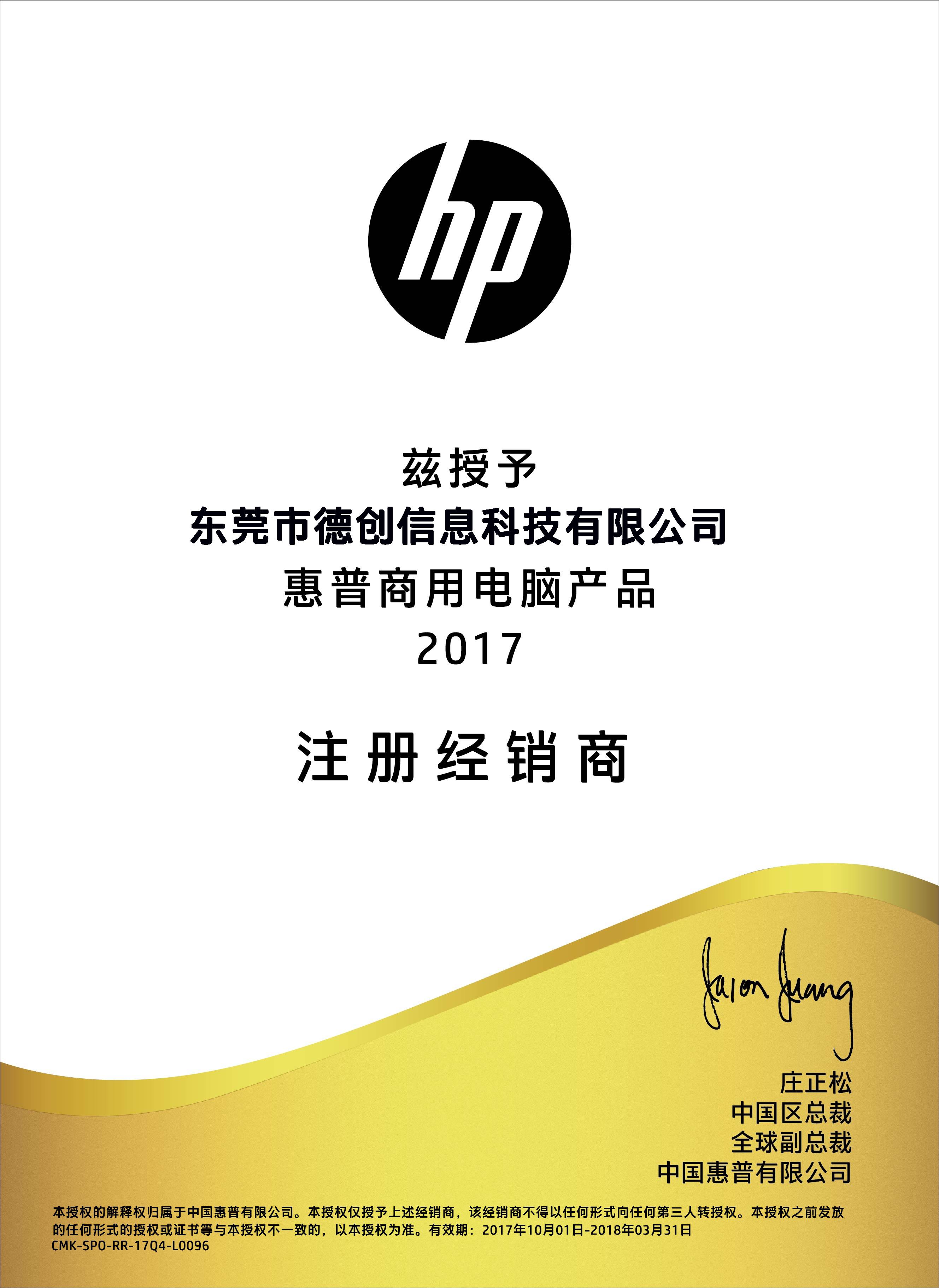 我司成為(wèi)惠普商業(yè)電(diàn)腦(nǎo)産品2017年(≈δnián)注冊經銷商